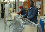 - After they have been perfectly dried, Balmer Architectural Mouldings Inc. staff packs the pieces in wooden crates.